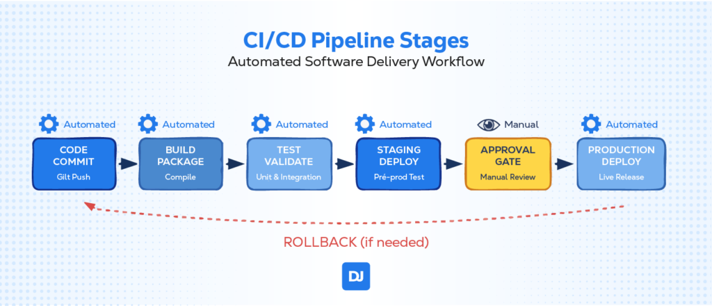 This fail-fast approach saves time, reduces risk, and ensures that only thoroughly tested, approved changes reach your users. Whether you’re building a simple web application or a complex distributed system, these core stages provide the foundation for reliable, continuous software delivery: