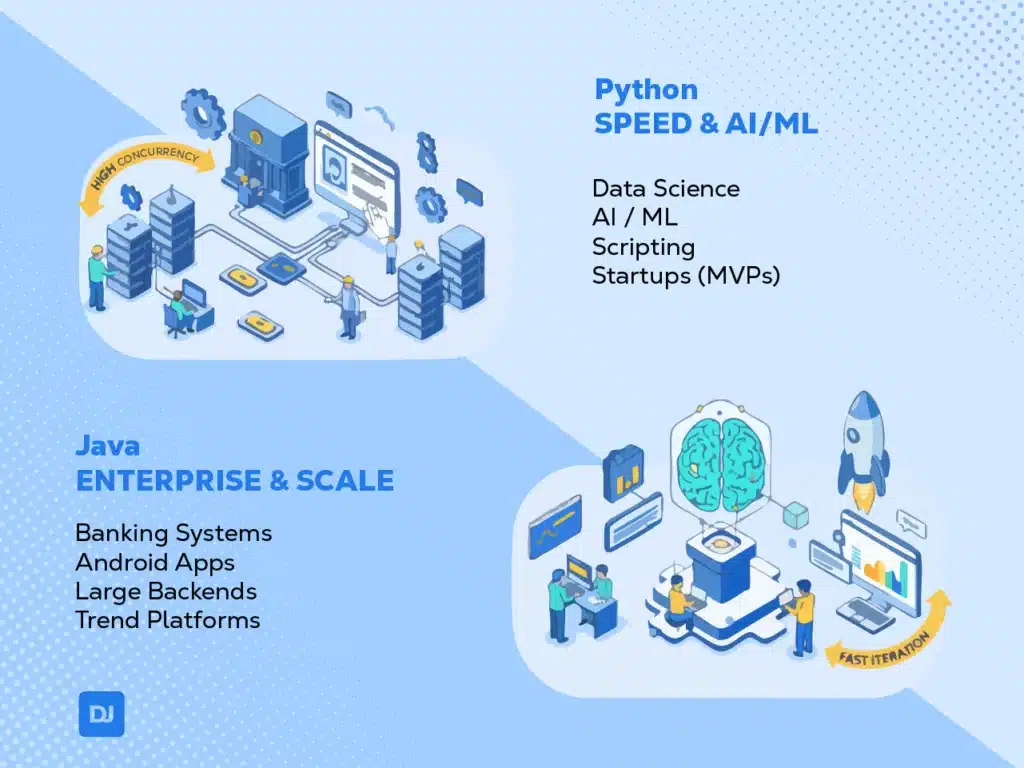 | Feature | Java (Enterprise & Scale) | Python (Speed & AI) |