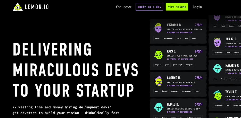 Lemon.io is a freelance platform useful for startups looking to hire software developers on-demand. The platform looks to simplify the hiring process for short-term or project-based work with a wide database of developers ready to start working.