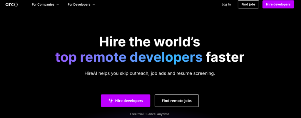 • Arc is suitable for different hiring needs, offering both freelance developers and fully remote developers.